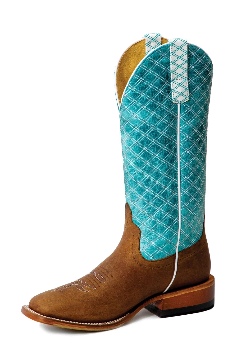 Styled with a hybrid outsole and a stirrup-friendly western heel, you can’t go wrong with this turquoise Western fashion boot.