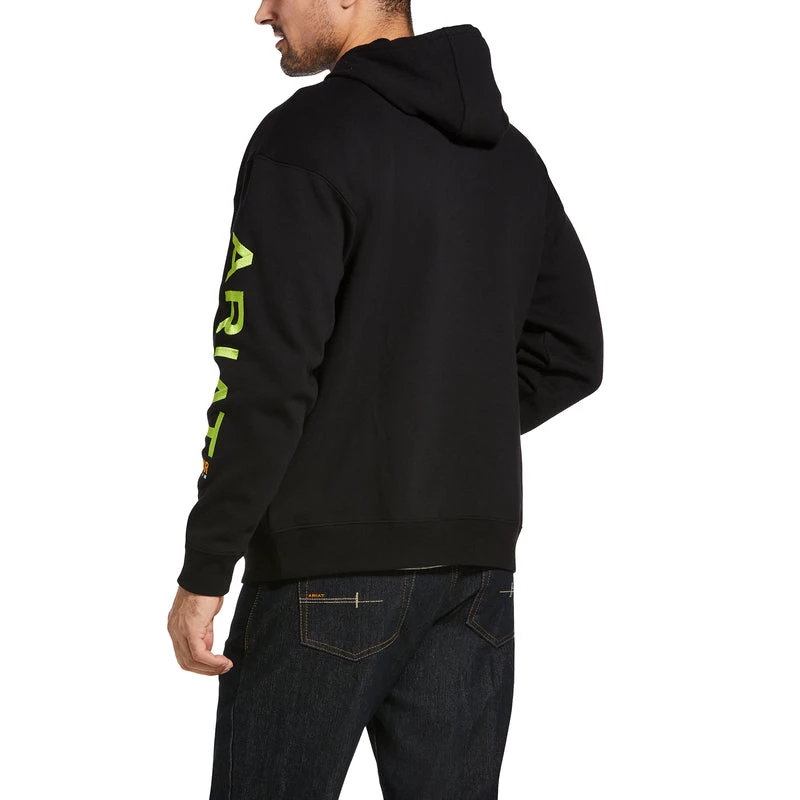 This Ariat Rebar sweatshirt is an easy-wear, hard-working hoodie made of comfortable warm fleece. A great feature for a work sweatshirt is the stain-release technology and water-repellent performance.Â