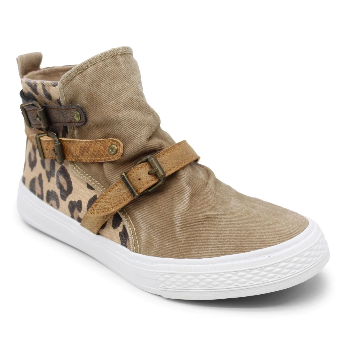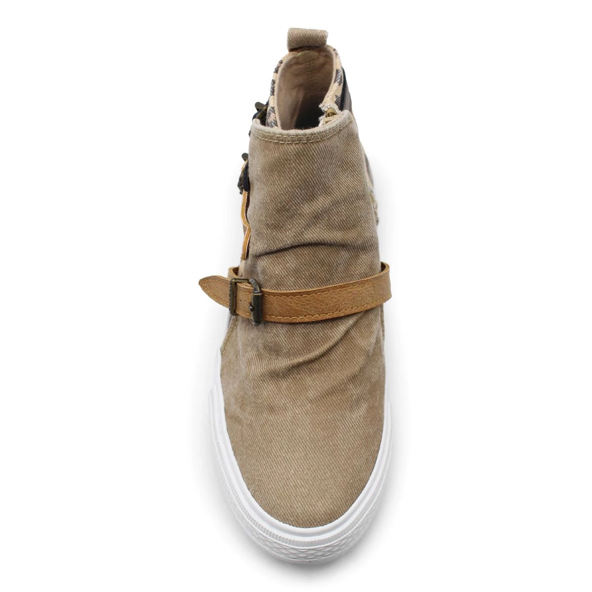 Artful dimension!Ā A high top slip-on sneaker perfect for your casual wardrobe. This easy-going sneaker features a high-top, bootie-like silhouette with canvas uppers and unique wraparound adjustable buckle straps.Ā A side zipper allows for easy on/off and a padded footbed allows for effortless, all day comfort.Ā