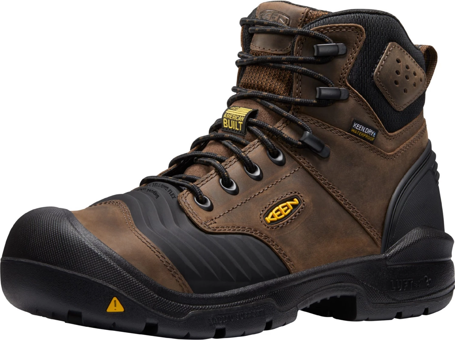 This unique work boot is built in America and offers revolutionary KEEN.BELLOWS FLEX technology to flex, fold and bend with 3x less torque than other work boots. Working while kneeling has become much easier on the feet!