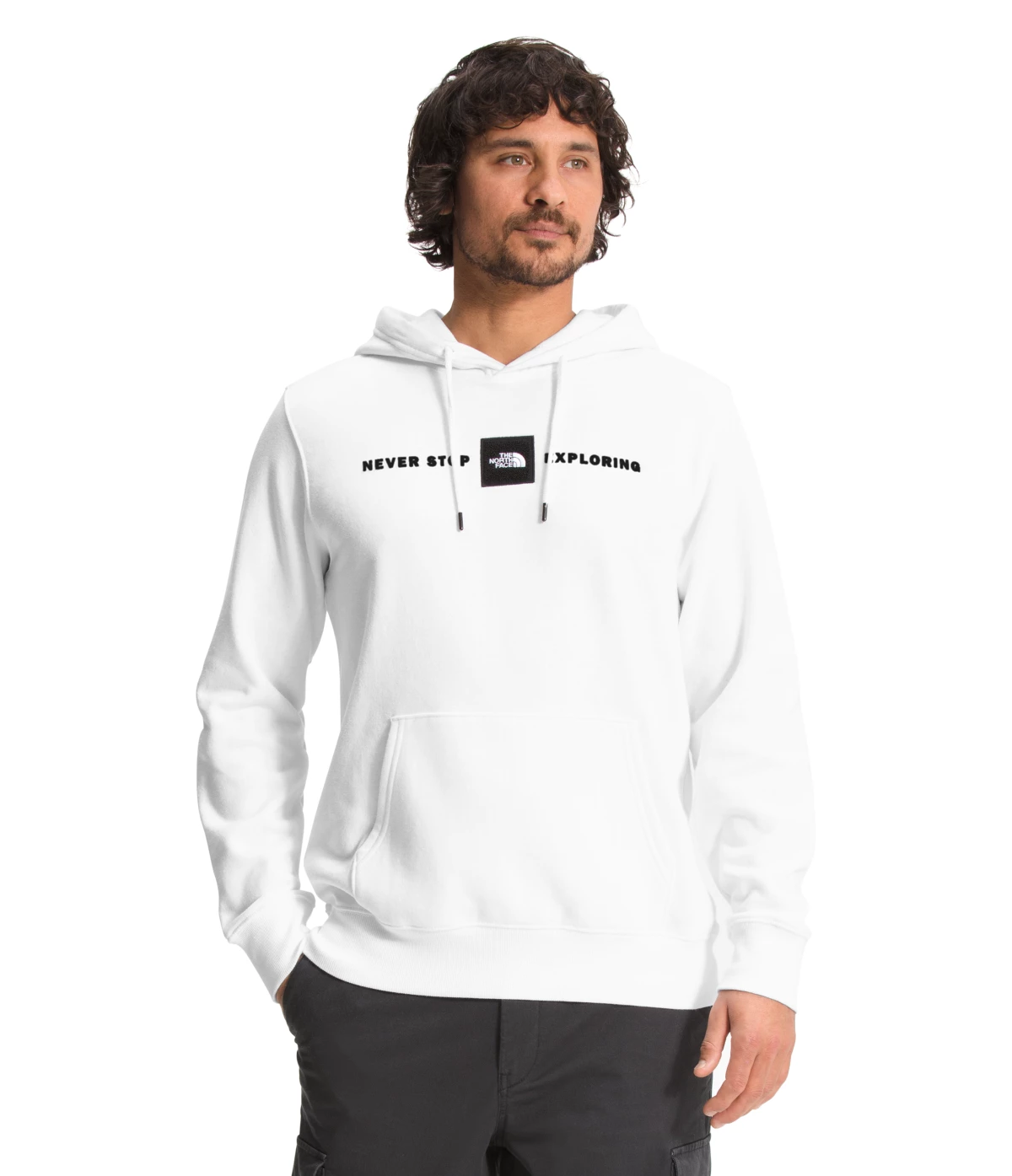 - No-hand, water-based, screen-printed graphic with satin-stitch, woven logo patch on chest
